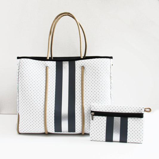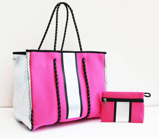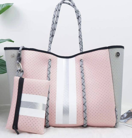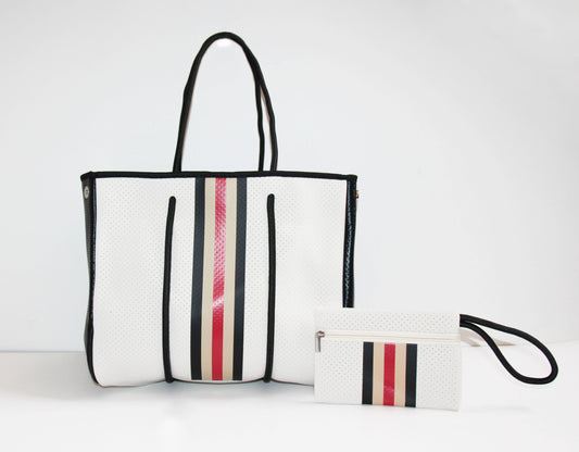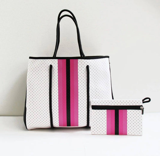 The Ella Tote Winter White Neoprene W/pink Stripe